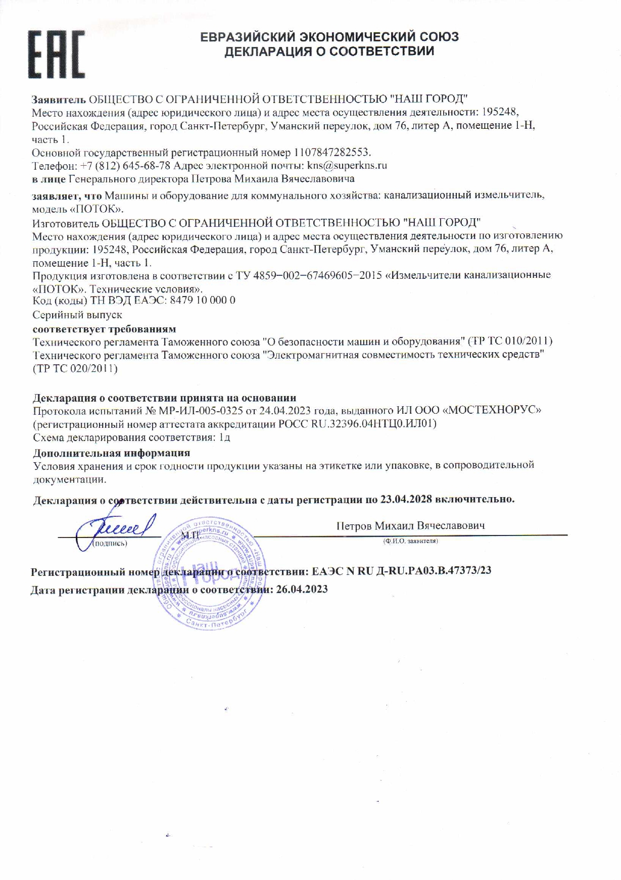 Декларация о соответствии Скачать